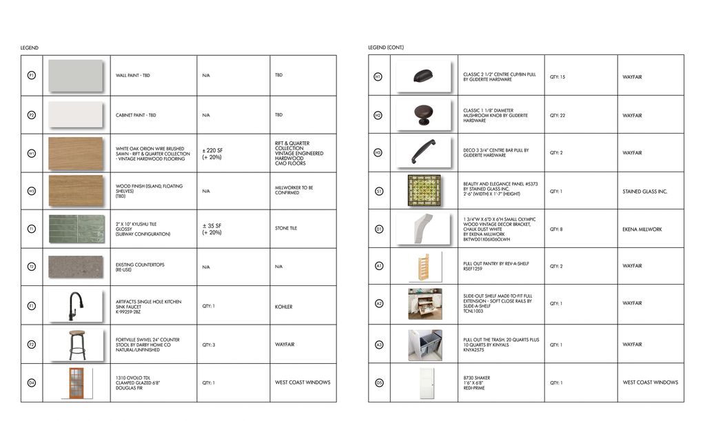 Don't have time to research suppliers? We can provide a detailed list of where to find those items you need and even provide required square footage of your finishes for pricing information.